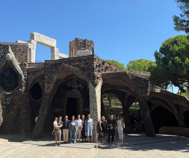 The Colònia Güell Crypt, designed by Antoni Gaudí, is a key work in the evolution of his oeuvre and an essential visit to understand his innovative techniques. Promoted by the Count of Güell in Santa Coloma de Cervelló as part of an industrial colony near Barcelona, the crypt shows Gaudí’s pioneering use of catenary arches, organic forms and experimental materials, which would later influence his masterpiece, the Sagrada Família. The structure blends harmoniously with nature, reflecting his deep connection with natural forms. A visit to the crypt offers a unique insight into Gaudí’s creative process and his visionary approach to architecture.